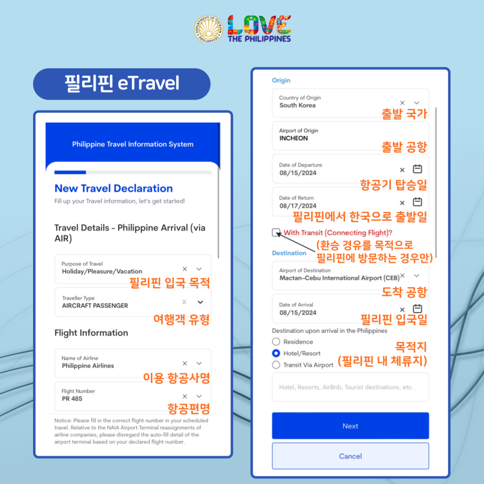 필리핀 eTravel 시스템은 입국 절차를 디지털화하여 더 간편하고 효율적인 여행 환경을 제공합니다.